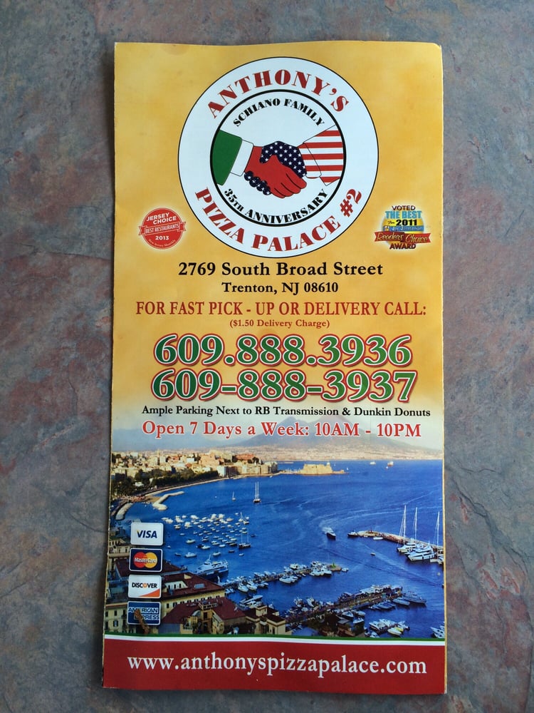 Welcome to Anthony's Pizza Palace, a hidden gem located in Trenton, NJ. This delightful pizzeria offers an extensive menu that caters to every palate. From their specialty pizzas, like the savory BBQ Chicken and the classic Old Fashioned Tomato Pizza, to delicious calzones and strombolis, Anthony’s has something for everyone.